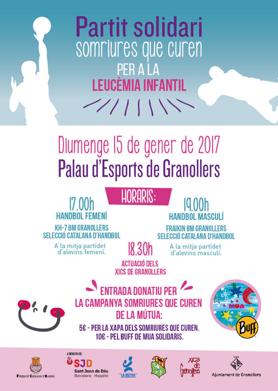 El proper diumenge 15 de gener de 2017 se celebrarà el partit solidari Somriures que curen per a la Leucèmia Infantil al Palau d’Esports de Granollers.