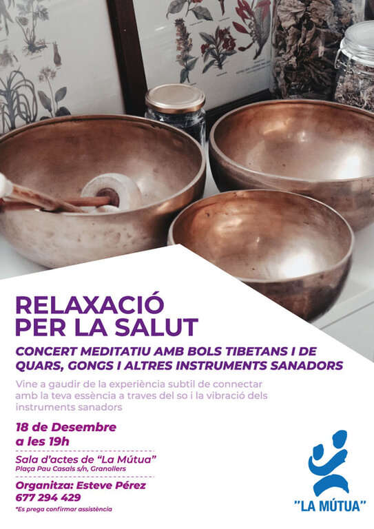 El proper dimecres 18 de desembre a les 19h tindrà lloc un concert meditatiu amb bols tibetans i de quars, gongs i altres instruments sanadors, organitzat per Esteve Pérez.