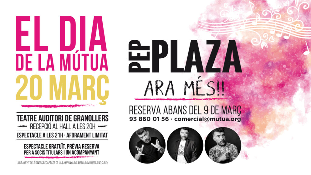 El divendres 20 de març celebrarem la cinquena edició del DIA DE LA MÚTUA. Aquest any ens acompanyarà l’home de les mil veus, el gran PEP PLAZA.