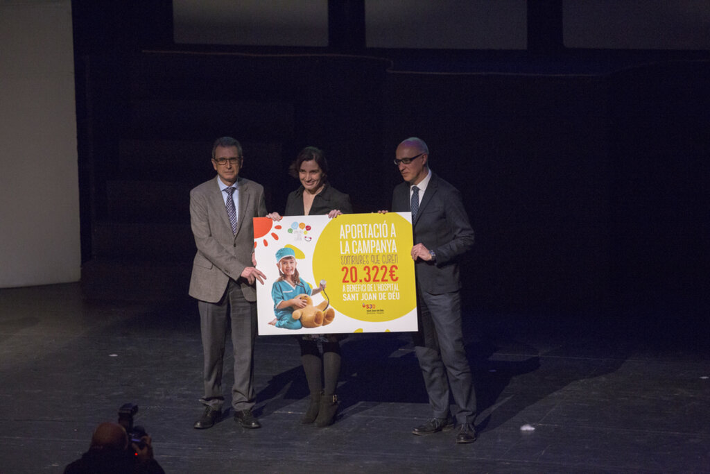 Cómo ya es habitual, la Gala del Día de La Mútua es el ultimo acto de la campaña solidaria “Somriures que Curen”, este año la cifra recaudada en beneficio del Hospital Sant Joan de Déu, han sido de 20.322 € que se destinan a la investigación del Cáncer Infantil, concretamente a la línea de investigación de la Leucemia Infantil.