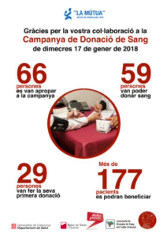 Volem agrair a totes les persones que van col·laborar a la campanya de donació de Sang el passat dimecres 17 de gener a la Mútua de Granollers.
