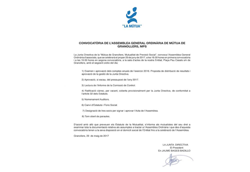 H2O Comunicació2017-06-12 09:08:502019-07-17 09:12:24CONVOCATÒRIA DE L’ASSEMBLEA GENERAL ORDINÀRIA DE MÚTUA DE GRANOLLERS, MPS