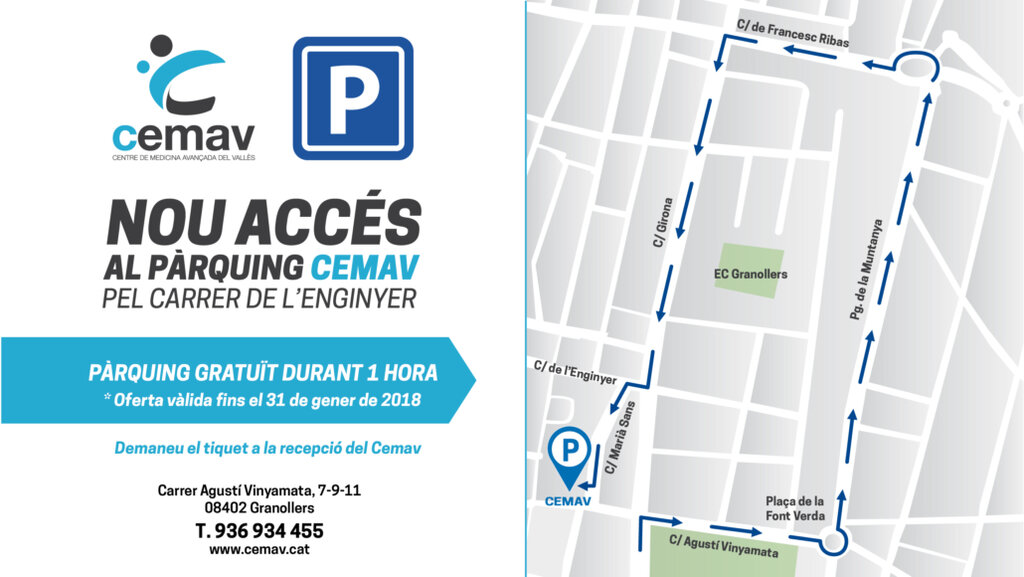 Girar a la dreta pel carrer d’Agustí Vinyamata fins la Plaça de la Font Verda en direcció a l’Hospital i un cop allà baixar pel carrer de Francesc Ribas fins a recuperar el carrer Girona en sentit Barcelona des d’on trobareu les indicacions al carrer de l’Enginyer que us donarà accés a l’entrada del pàrquing.