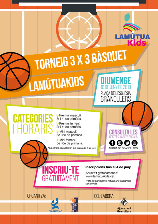 El 10 de juny de 2018 se celebrarà la primera edició del Torneig 3×3 de Bàsquet de La Mútua Kids a la Plaça de l’Església de Granollers.